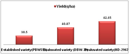 - Evaluvated variety (HD-2967) performed well as compared to DBW-39 followed by established variety (PBW-550).