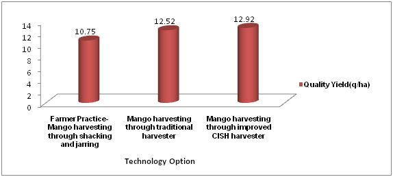 - Cost benefit ratio of mango harvesting through improved CISH harvester was 1:4.0, while traditional harvester and shacking and jarring were 1:3.5 and 1:3.36, respectively.