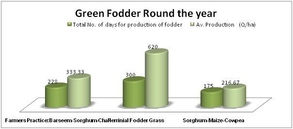 - Perennial fodder grasses provided approximately 300 days green fodder as compared to farmers practice.